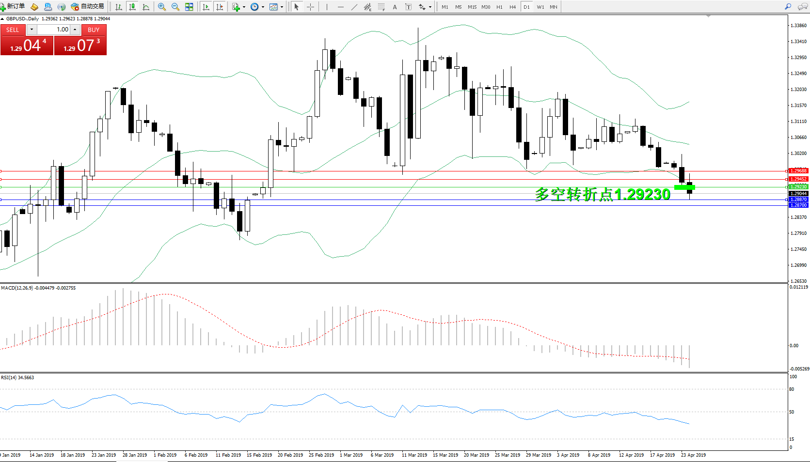 交易策略:1.29230下方看跌,目标1.28870、1.28700