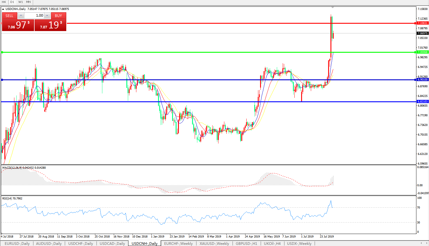 美元兑人民币USDCNH 日线图: