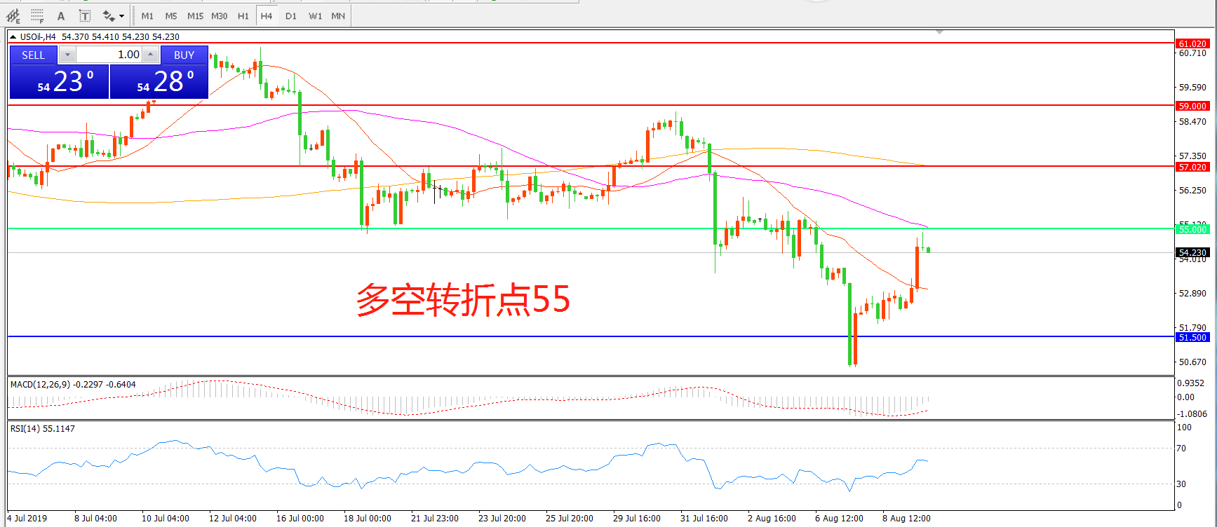 交易策略:在55.00之下看跌,目标51.50   49.50