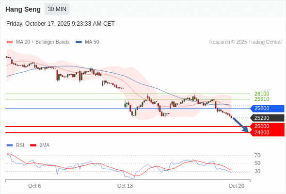 恒生指数 当日内: 下跌趋势。