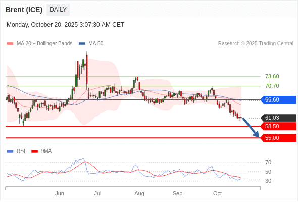交易策略: 在 66.60 之下,看跌,目标价位为 58.50 ,然后为 55.00 。