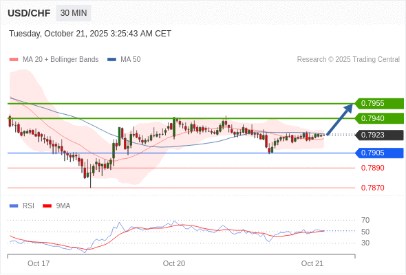 在 0.7905 之上,看涨,目标价位为 0.7940 ,然后为 0.7955 。