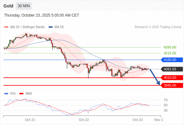 在 4160.00 之下,看跌,目标价位为 4010.00 ,然后为 3945.00 。