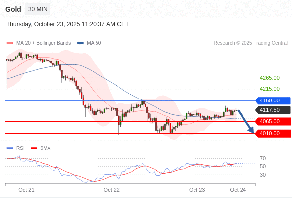 交易策略: 在 4160.00 之下,看跌,目标价位为 4065.00 ,然后为 4010.00 。