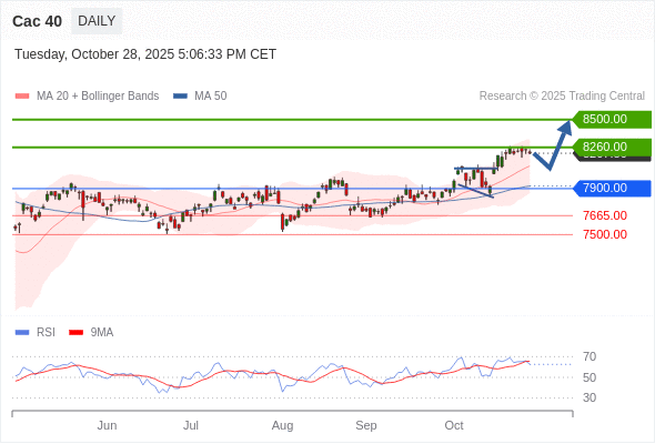Cac 40 短线: 上升趋势。
