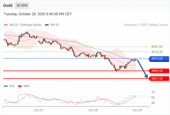 黄金现货 当日内: 短期关键阻力位在3973.00。
