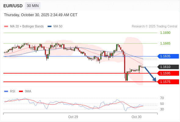 交易策略: 在 1.1635 之下,看跌,目标价位为 1.1595 ,然后为 1.1575 。