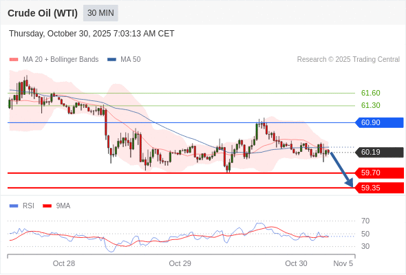 交易策略: 在 60.90 之下,看跌,目标价位为 59.70 ,然后为 59.35 。