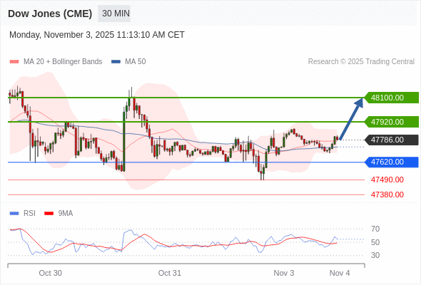 在 47620.00 之上,看涨,目标价位为 47920.00 ,然后为 48100.00 。