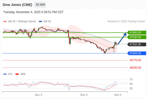 在 47000.00 之上,看涨,目标价位为 47530.00 ,然后为 47680.00 。