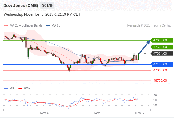 在 47135.00 之上,看涨,目标价位为 47530.00 ,然后为 47680.00 。