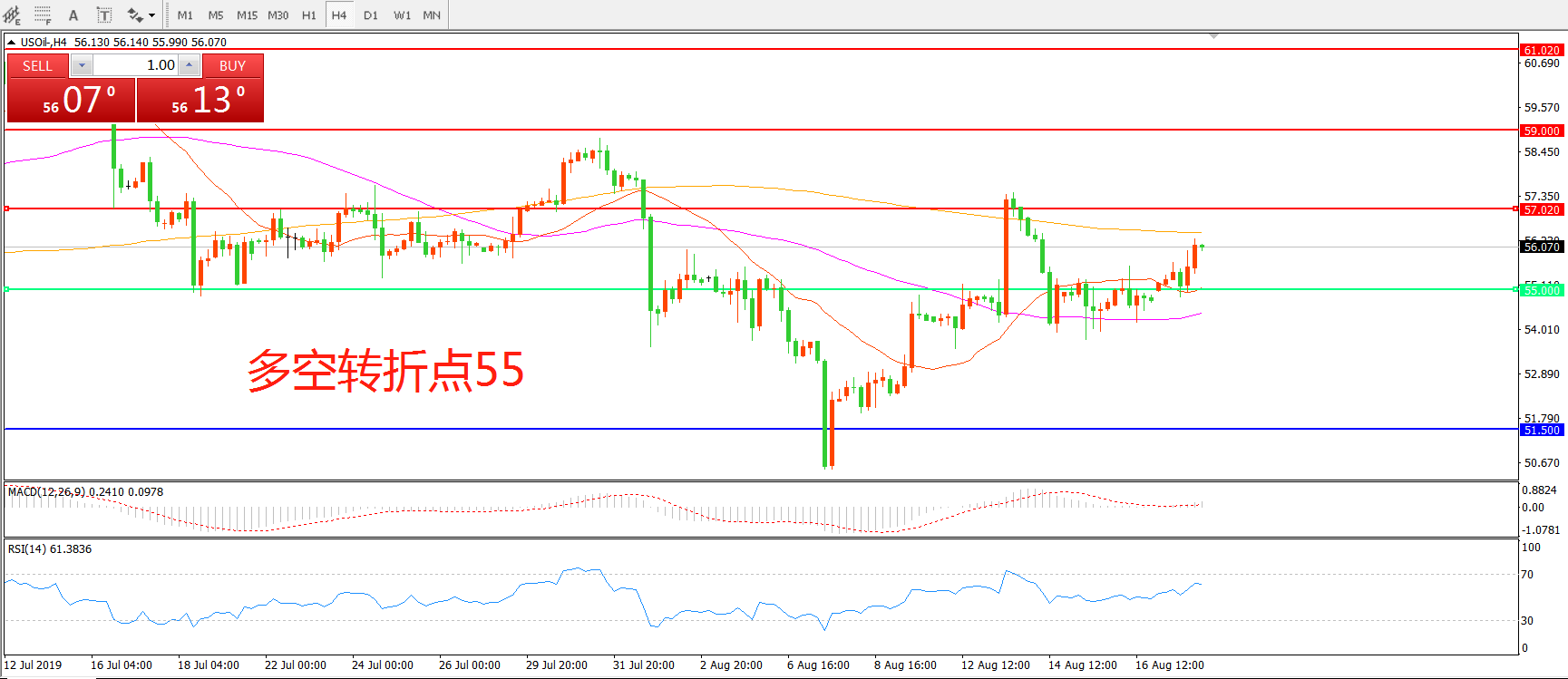交易策略:在55.00之上看涨,目标57.00   59.00