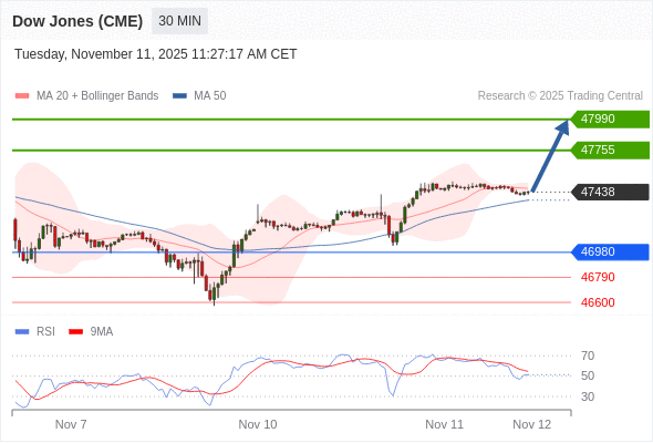 在 46980 之上,看涨,目标价位为 47755 ,然后为 47990 。