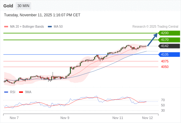 在 4105 之上,看涨,目标价位为 4170 ,然后为 4200 。