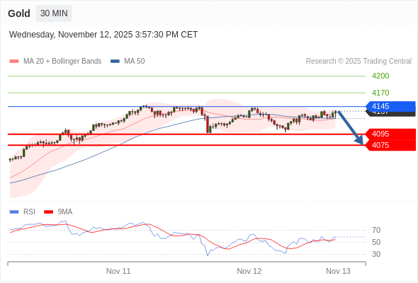在 4145 之下,看跌,目标价位为 4095 ,然后为 4075 。