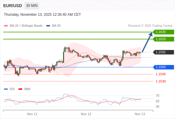交易策略: 在 1.1560 之上,看涨,目标价位为 1.1620 ,然后为 1.1635 。