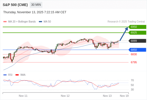 在 6850 之上,看涨,目标价位为 6925 ,然后为 6950 。