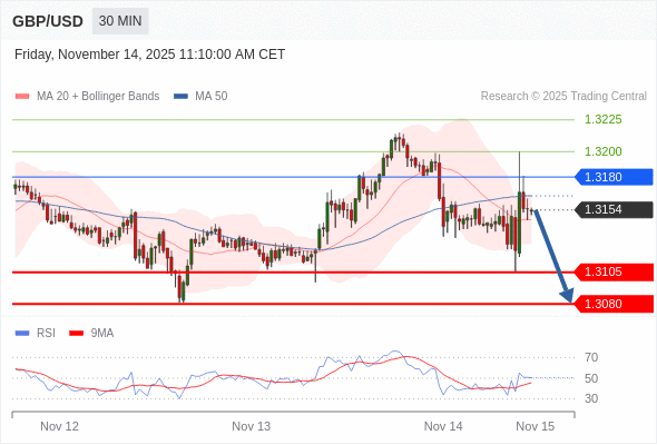 交易策略: 在 1.3180 之下,看跌,目标价位为 1.3105 ,然后为 1.3080 。