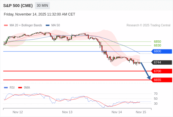 在 6800 之下,看跌,目标价位为 6700 ,然后为 6655 。