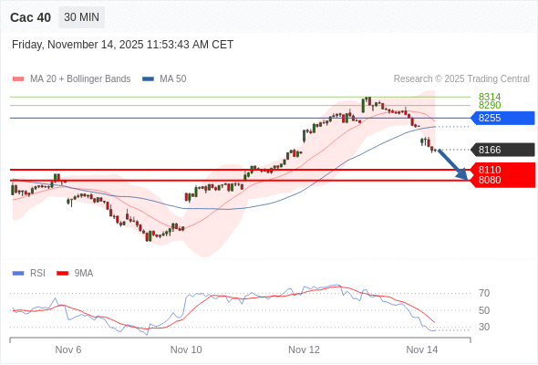 在 8255 之下,看跌,目标价位为 8110 ,然后为 8080 。