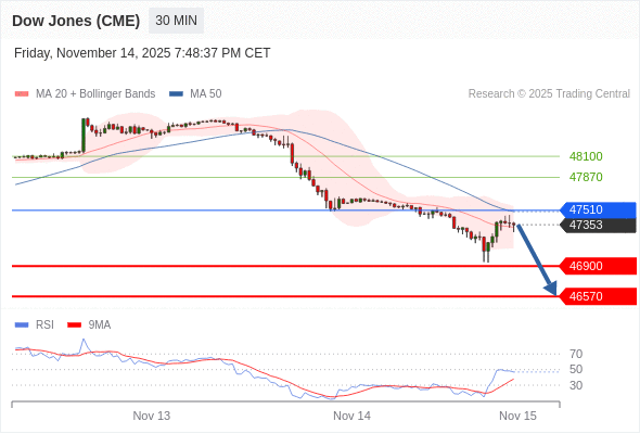 在 47510 之下,看跌,目标价位为 46900 ,然后为 46570 。