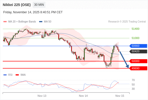日经225股指期货 (OSE) 当日内: 短期关键阻力位在50660。