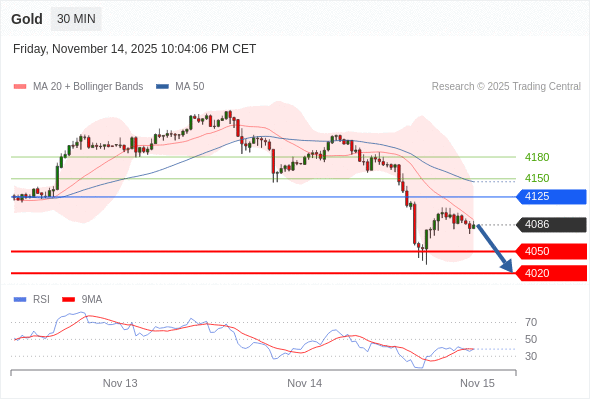 在 4125 之下,看跌,目标价位为 4050 ,然后为 4020 。