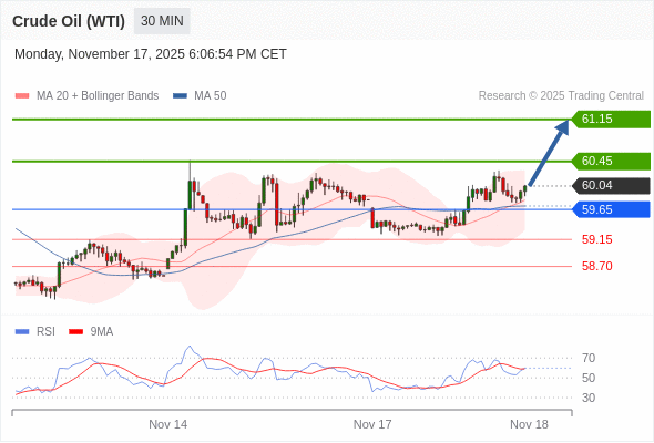 在 59.65 之上,看涨,目标价位为 60.45 ,然后为 61.15 。