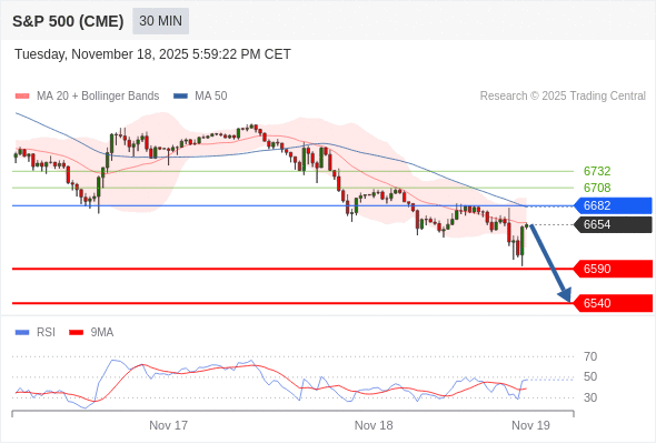 在 6682 之下,看跌,目标价位为 6590 ,然后为 6540 。
