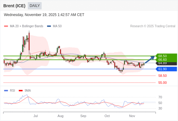 在 61.90 之上,看涨,目标价位为 66.60 ,然后为 68.50 。