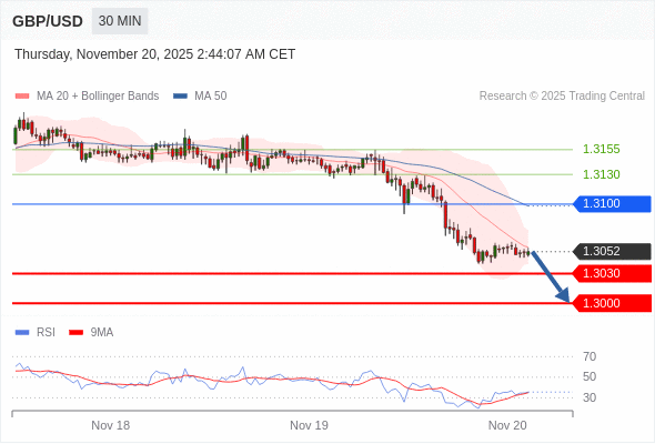 交易策略: 在 1.3100 之下,看跌,目标价位为 1.3030 ,然后为 1.3000 。