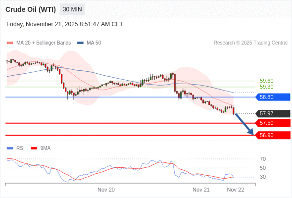 在 58.80 之下,看跌,目标价位为 57.50 ,然后为 56.90 。