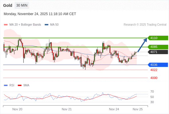 在 4036 之上,看涨,目标价位为 4085 ,然后为 4110 。