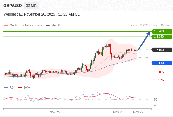 在 1.3140 之上,看涨,目标价位为 1.3240 ,然后为 1.3260 。
