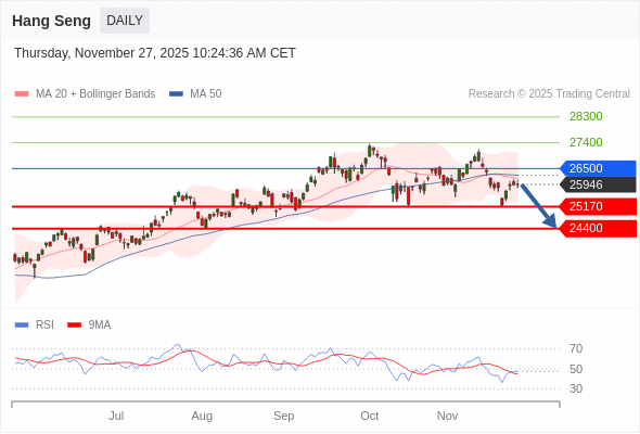 技术点评: 只要26500阻力位不被突破,向下跌破25170位置的风险很高。