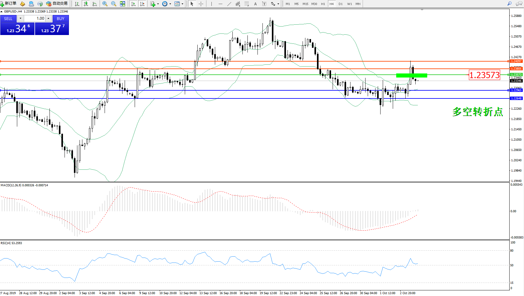 交易策略:1.23573下方看跌,目标1.22965、1.22648