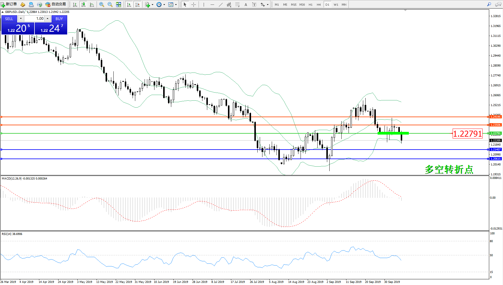 交易策略:1.22791下方看跌,目标1.214071.20615