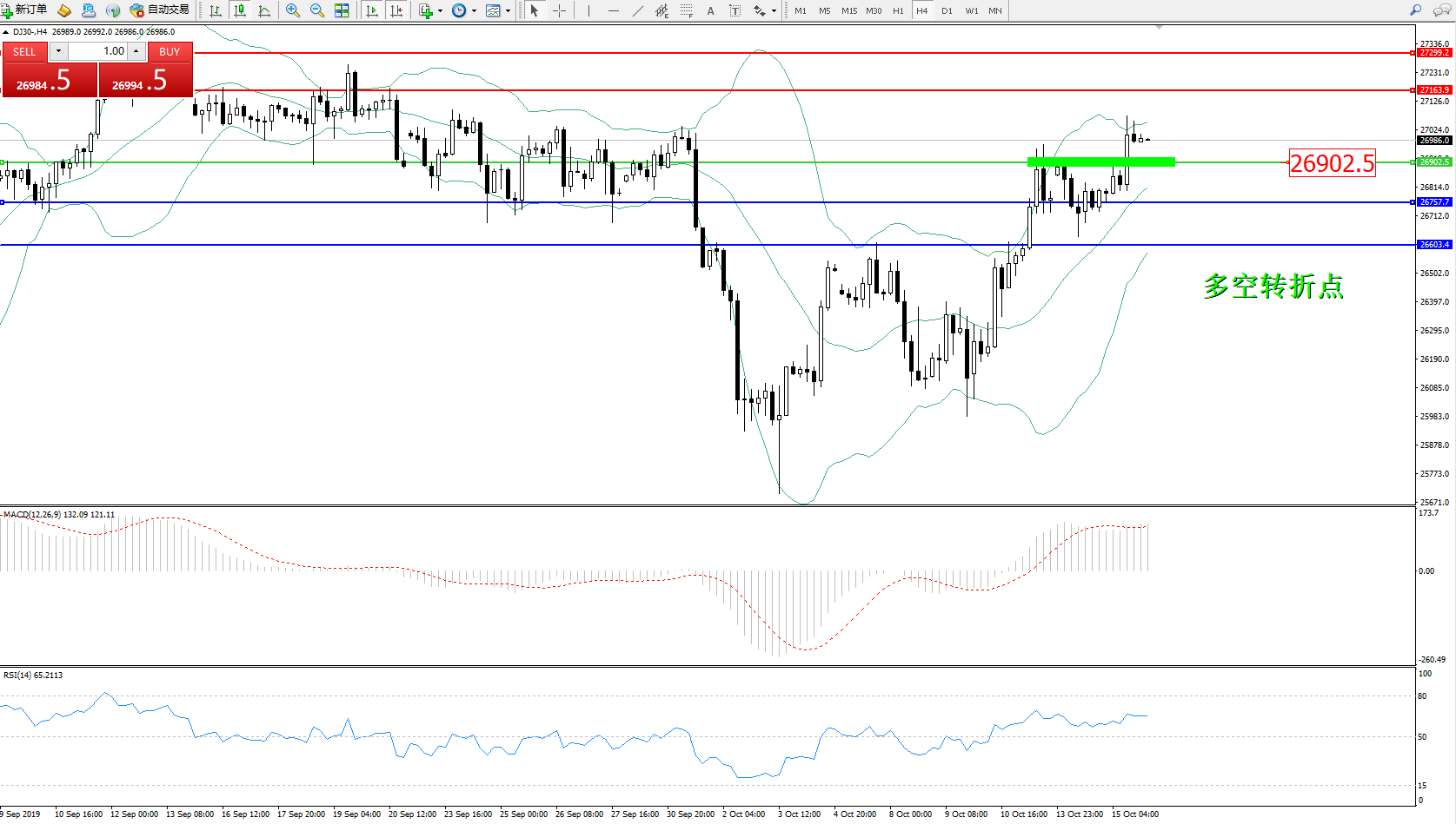 道琼斯指数10月15日(周二)收盘上涨237.40点,涨幅0.89%,报27024.80点。道指重新站上27000关口。美企财报季开局强劲,提振股指走高。受联合健康的带动,医疗保健板块领涨,其次是电信业务板块;日常消费品板块和公用事业板块领跌。美国经济就业增长强劲,消费者支出保持健康。戴利还表示,美联储分别于7月和9月降息,应当能够帮助维持经济扩张性;劳动力增长缓慢,生产力没有出现大幅提高,这在未来可能拖累经济增长。