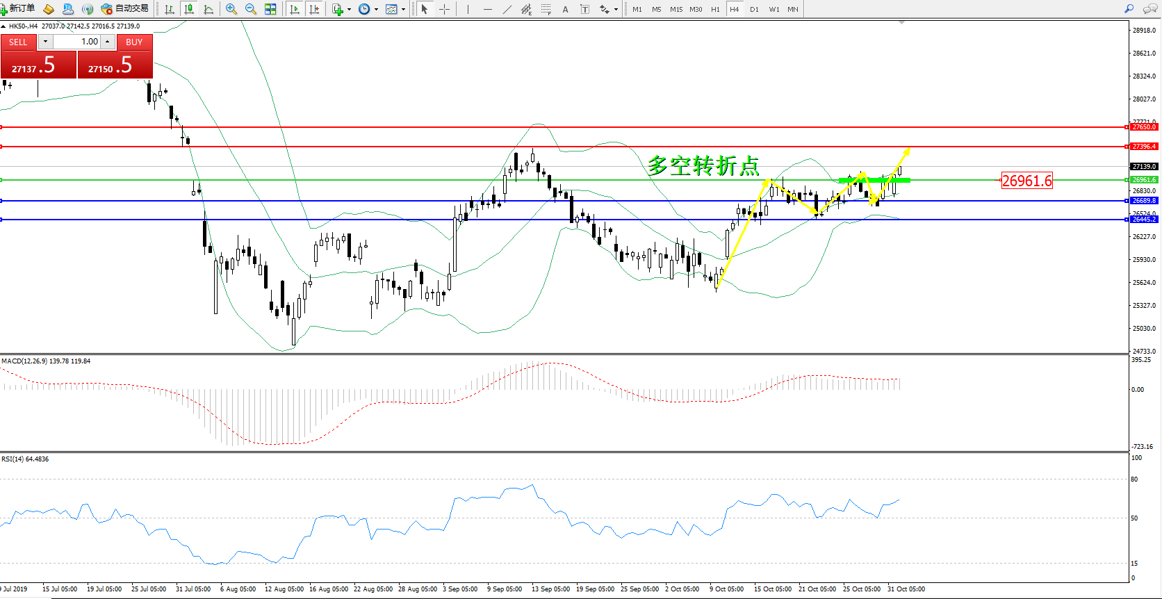 香港恒生指数11月1日(周五)收盘上涨194.04点,涨幅0.72%,报27100.76点;恒指小幅上涨,盘中最高触及27102.420点,最低下探26800.570点,市场交投热度回暖。香港交易所回应称,今年我们的新股市场表现良好。今年上半年新股市场取得了令人满意的成绩,共迎来84家公司上市,市场集资额达698亿港元,位列全球第三。下半年IPO申请仍非常踊跃。随着近期港股的回暖,互联网巨头阿里巴巴再次传出将登陆港股的消息。有消息称,阿里最早将于11月底或12月初登陆港股,筹资100亿美元至150亿美元。