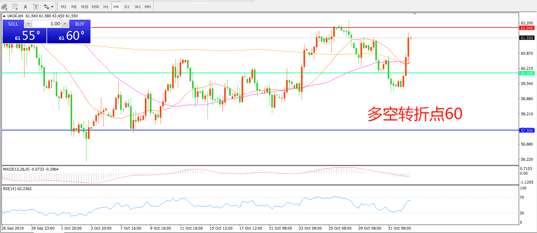 交易策略:在60.00之下看跌,目标57.50        55.50