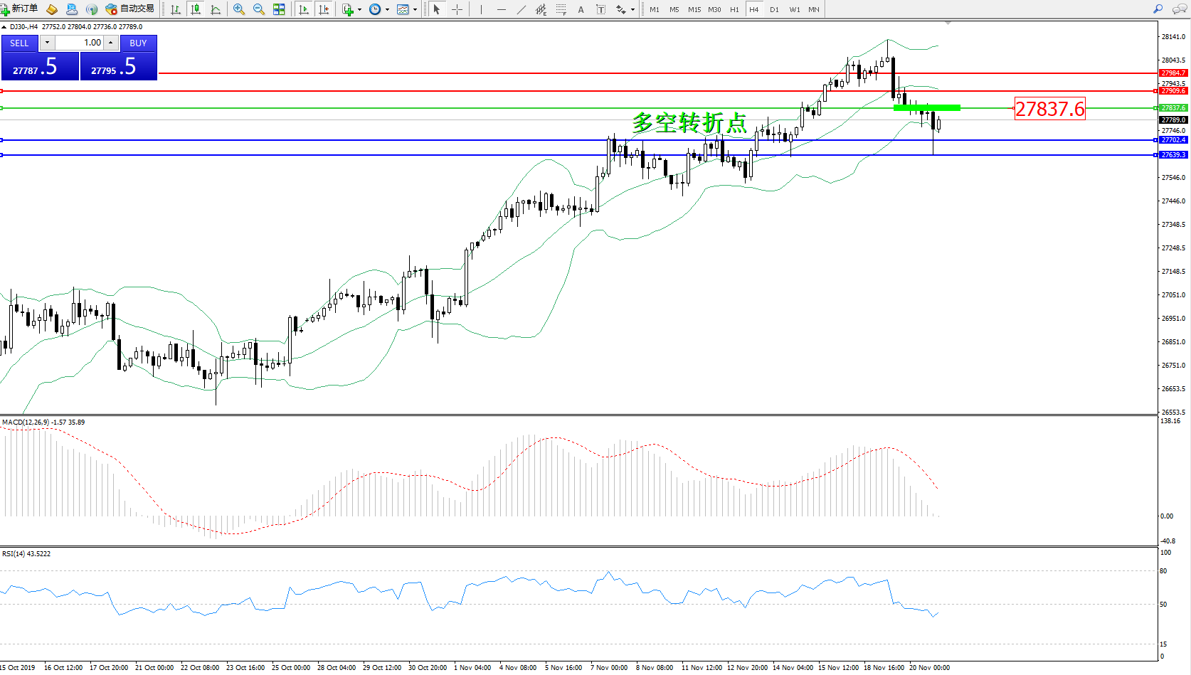 道琼斯指数11月20日(周三)收盘下跌112.90点,跌幅0.40%,报27821.09点。因对贸易协议前景的担忧加剧之际,投资者对高风险资产的胃口减弱,同时美联储最新政策会议的纪要显示在10月30日降息后大多数官员认为政策得到很好的校准;联储内部分歧日益加深,对美国利率的未来走势几乎没有提供任何指引。