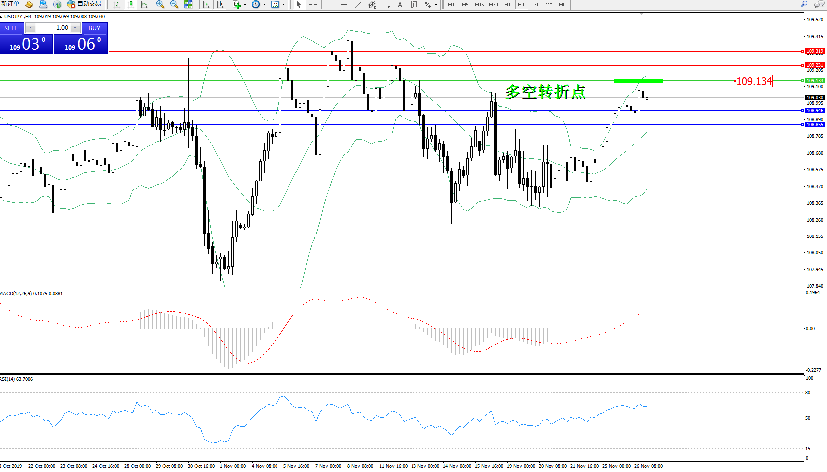 美元兑日元上涨0.11%至109.05附近,最高触及至109.21,为11月12日以来最高水平,日内整体受到贸易局势好转的提振,市场风险偏好情绪回暖也令全球股市走高,这令避险日元的吸引力下降,投资者需要进一步关注贸易局势的进展。