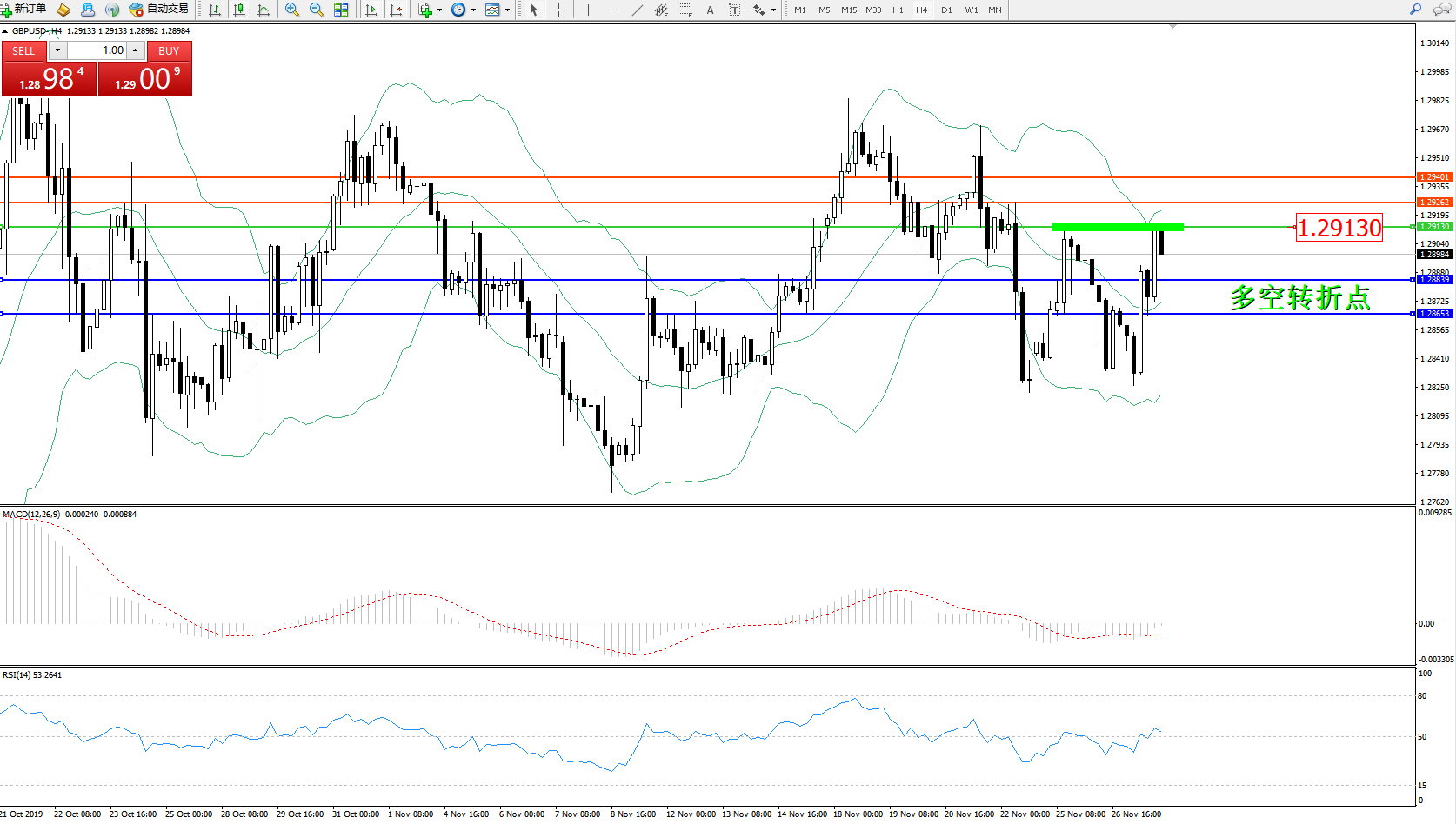 交易策略:1.29130下方看跌,目标1.28839、1.28653