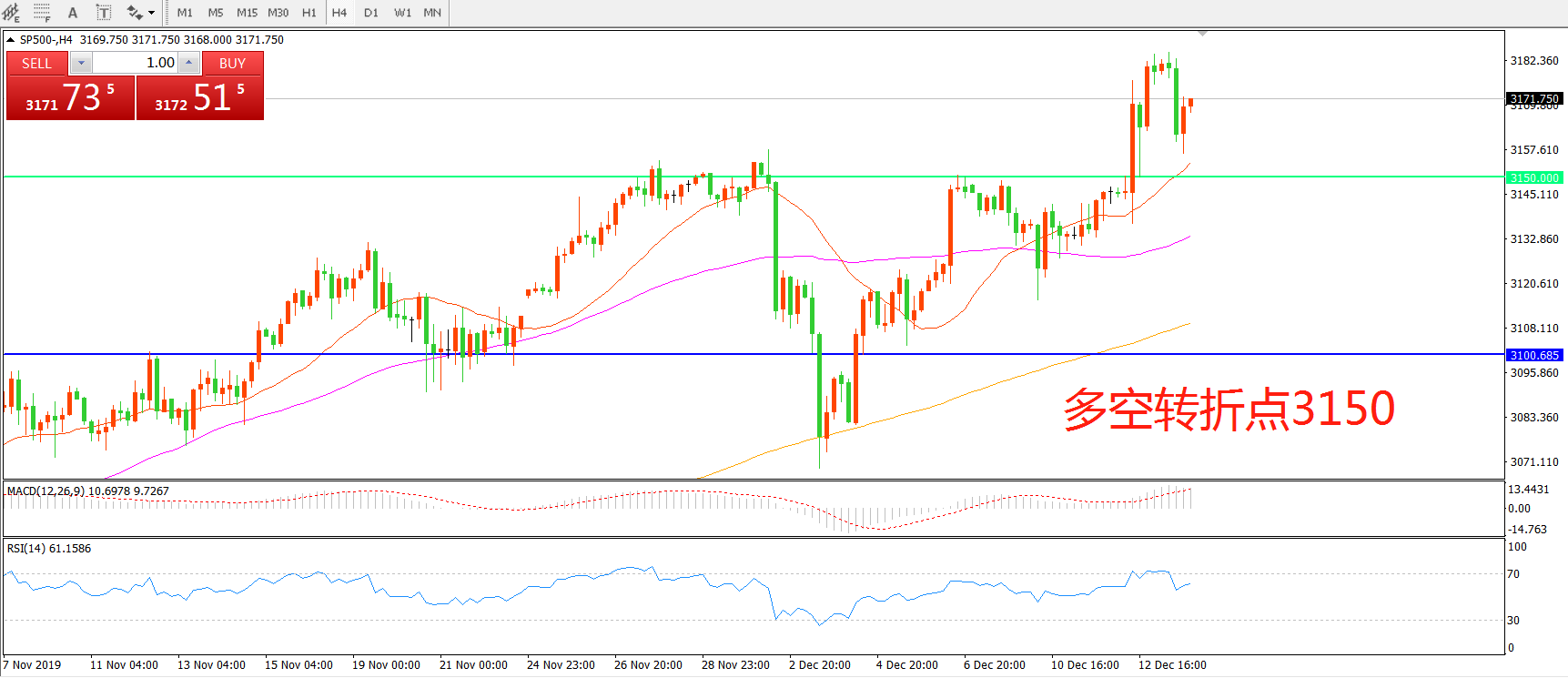 经过中美两国经贸团队的共同努力,双方已就中美第一阶段经贸协议文本达成一致,协议的达成为市场风险情绪提供了重要支撑,受此影响,标普500震荡走高,但冲高后“一泻千里”,收报3171.75点。苹果股价上涨1.36%,收报275.15美元,再创历史新高。本周的重要经济报告方面,周一将发布PMI综合预览报告和房屋市场指数;周五将发布2019年第三季度GDP数据和企业利润数据更新,务必重点关注。