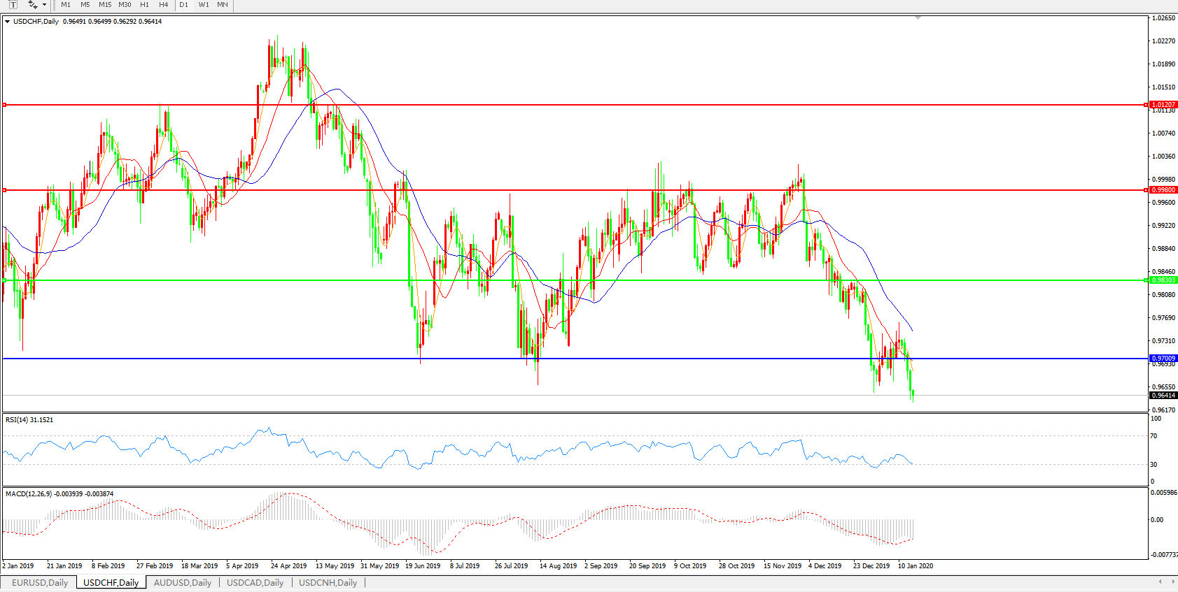 澳洲国民银行(NAB)周三(1月15日)发布技术分析报告指出,美元指数周线若收于96.91下方,将成为中期内大幅跌势的触发点;该行分析师表示,在2019年第四季度中有两个月美元出现了大幅下滑,但目前仍未跌破上行通道,关键点位于95.85;不过市场还需保持耐心,月线图上RSI指标已经测试过长期趋势阻力,因此跌势的开启已经箭在弦上; 今年1月出现的反弹或类似于去年11月的短线回升;周线图上96.91自2018年第三季度以来一直支持着美元指数,因此若跌破此处恐开启中期内的大幅跌势。