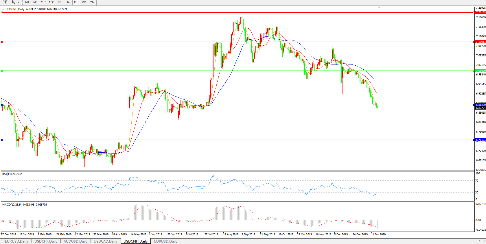 美元兑人民币USDCNH 日线图: