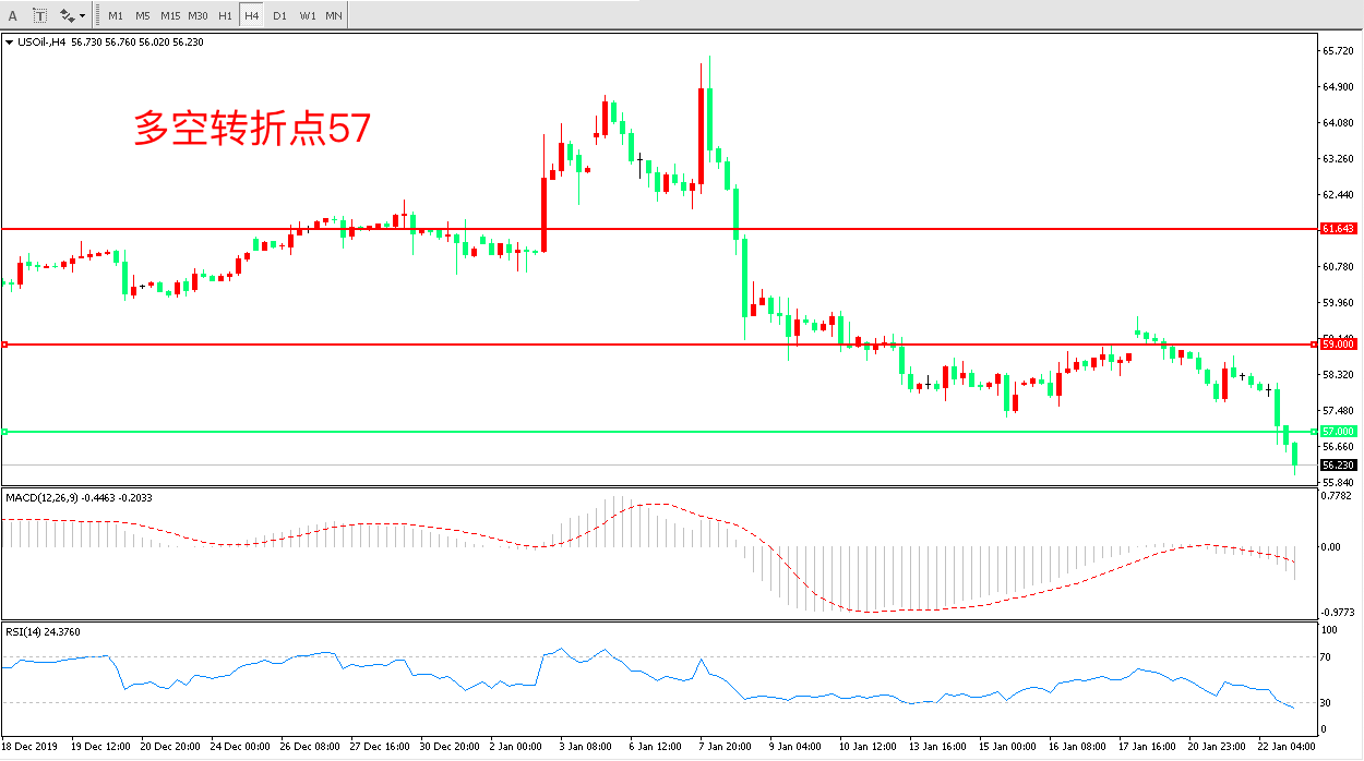 交易策略:在57.00之下看跌,目标55.00         52.00