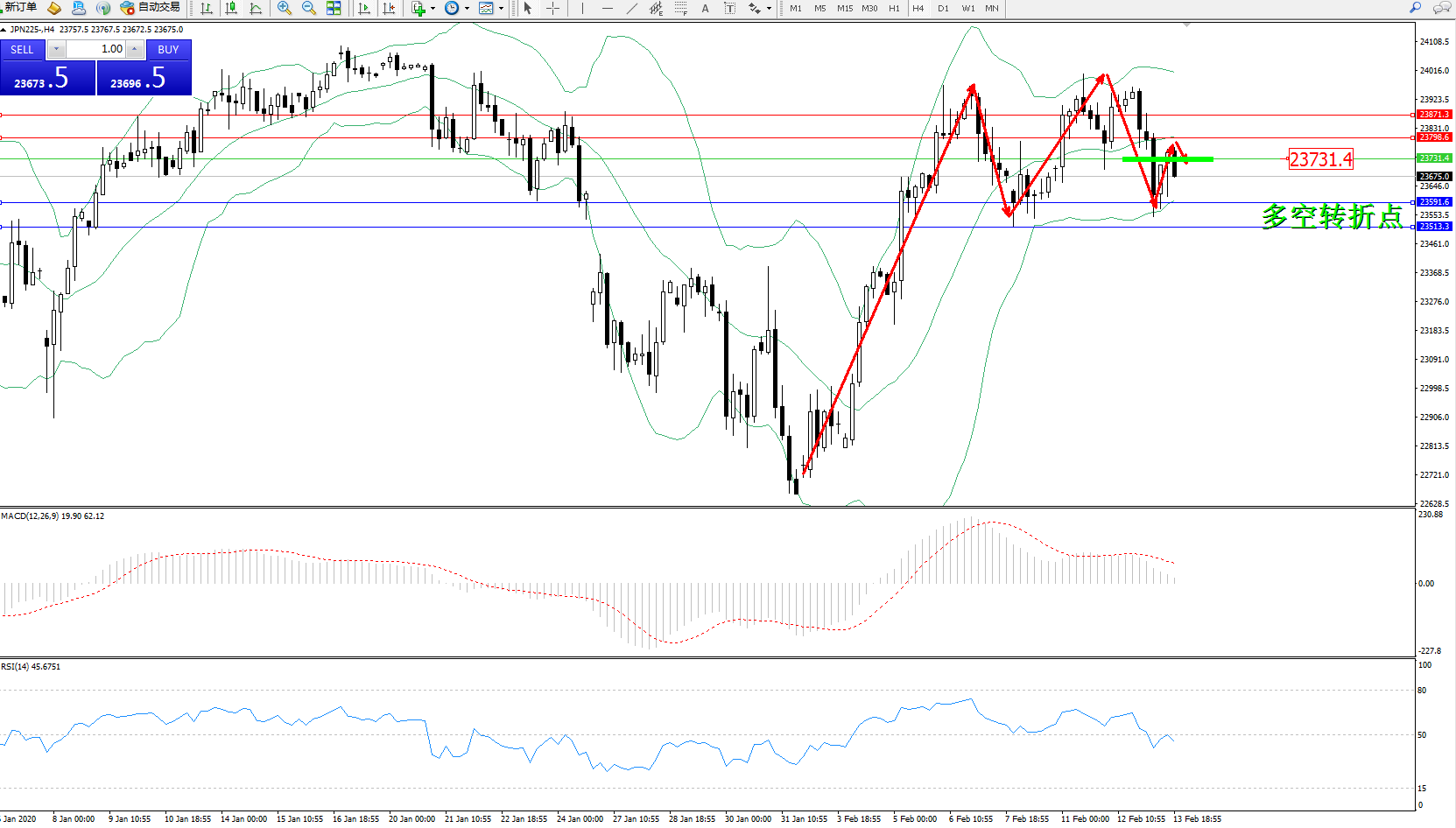 日经225指数2月13日(周四)收盘下跌51.21点,跌幅0.21%,报23810.00点。日内投资者对亚洲公共卫生事件的担忧情绪再度升温,国内股市有所承压,而亚洲多数股票市场也走低,商品货币也集体下跌,此前投资者短暂的乐观情绪很快消散,对于不确定性的顾虑仍使得资金逃离股市,日内美债收益率再度回落也强化了这一情绪,短中期疫情进展对全球市场的冲击仍是焦点。