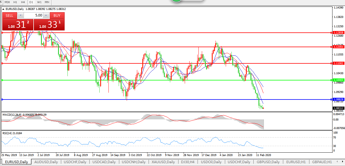 技术面简析:日图均线呈有序空头排列,汇价低位窄幅整理弱势依旧,MACD运行于0轴下方且量能继续放量 ,RSI持续走弱,预计短期汇价将进一步走低。
