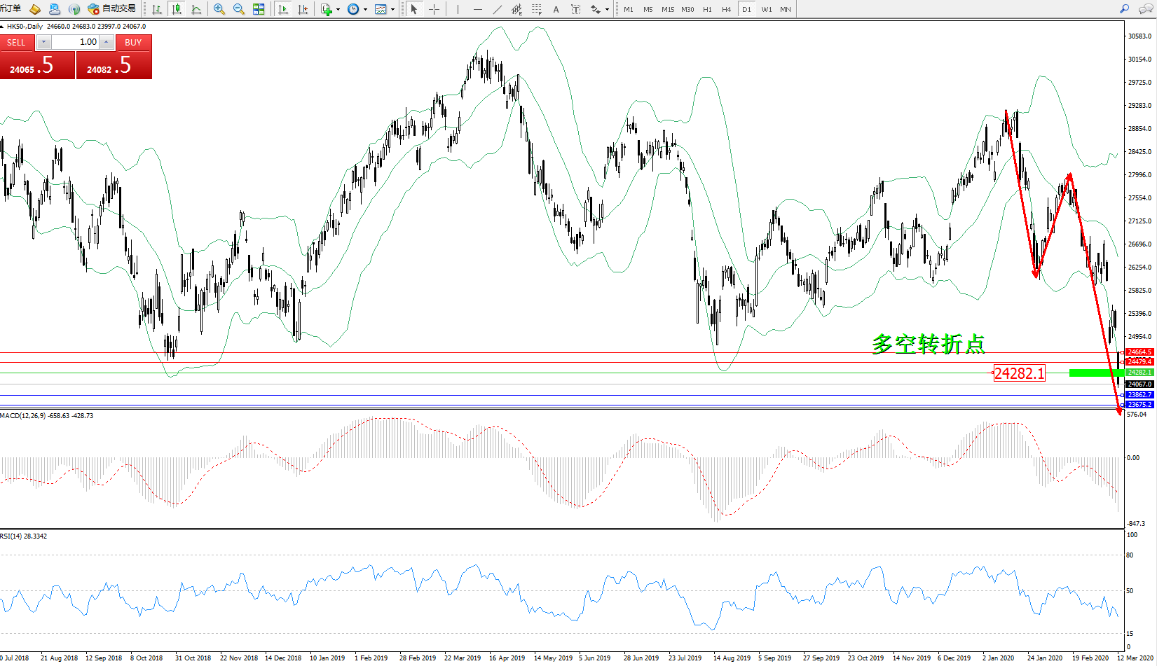 香港恒生指数312日(周四)收盘下跌922.54点,跌幅3.66%,报24309.07点;全球股市暴跌,市场一片哀嚎,港股恒指跟随多国股市进入技术性熊市。港A两地市场亦受重挫,港股主要股指皆大跌。恒指国指上午盘一度跌超4%,腾讯、中国平安等重磅蓝筹集体大跌。料市场持续受海外疫情与石油战消息影响,短期超跌可望迎来一波技术性反弹,但仍应保持谨慎投资。主板成交量为1522.62亿港元,港股通大幅净流入129.84亿港元。恒指波幅指数涨超30%,报47.92,刷新历史高位;反映投资者对30个交易日内恒指大幅向下波动的预期显著增强。隔夜12日晚间(北京时间)美股大幅低开,随后跌幅不断扩大,标普500指数跌幅扩大至7%,触发熔断,美股暂停交易15分钟。该次熔断,为美股史上第三次触发熔断。